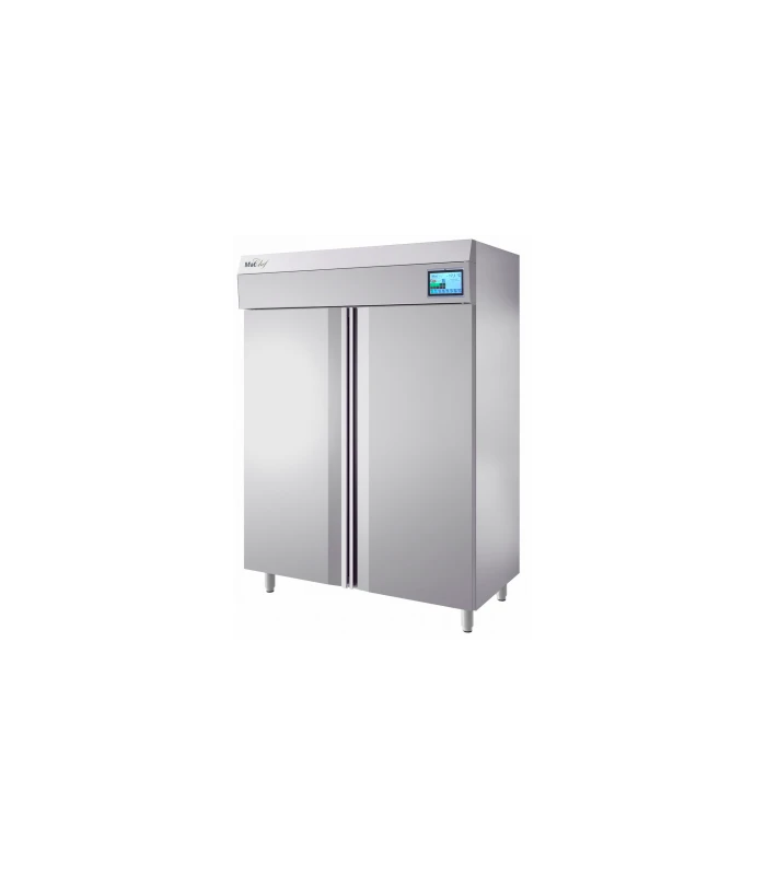 Les fonctions réfrigérées de cette armoire permettent de stocker et de désinfecter tous les aliments. Une courte décharge d’ozone (1 minute toutes les 20 minutes) prolongera leur durée de conservation sans aucune altération de la qualité. Les fonctions chauffantes sont utiles pour régénérer les aliments, chauffer les plats, désinfecter les serviettes de bain des centres de bien-être, stériliser les outils, les couverts ou tout autre objet dont la stérilisation est jugée nécessaire.