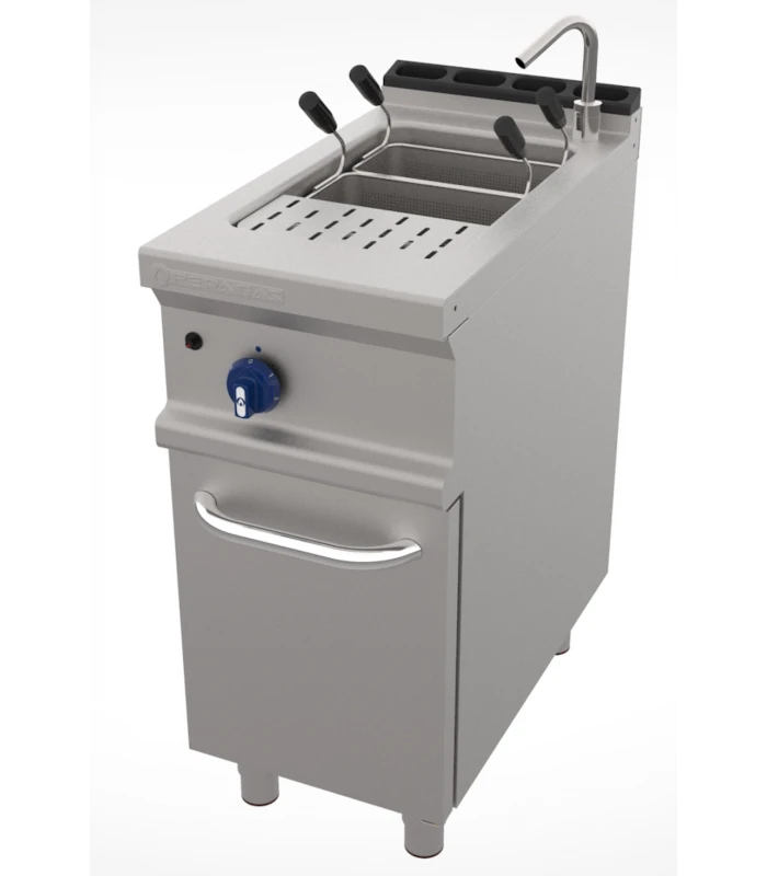 - Cuiseur à pâtes: pilote d’allumage manuel et piézo-électrique, thermocouple et brûleur tubulaire fabriqué en acier inoxydable situé sous la cuve.