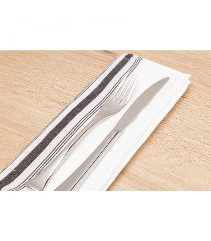 BOĂŽTE DE 10 SERVIETTES DE TABLE BISTRO AVEC RAYURES NOIRES EN POLYESTER