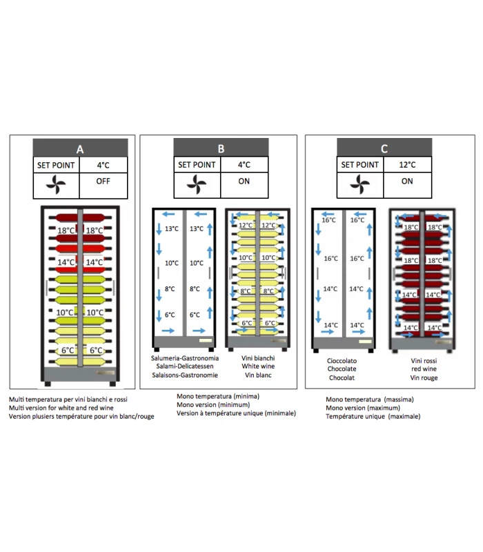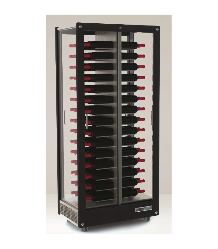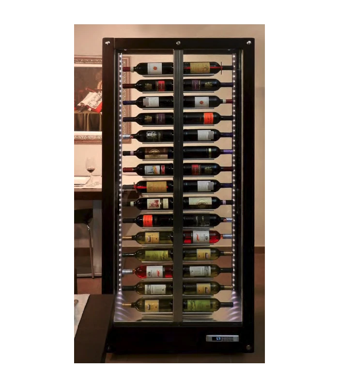 Cette cave à vin est équipée d’un système de réfrigération innovant grâce au positionnement du serpentin au centre de la cave. Les 4 faces vitrées offrent une grande visibilité des bouteilles exposées.