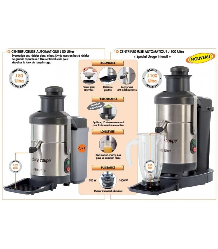 La centrifugeuse professionnelle permet de rĂ©aliser des jus de fruits frais, jus de lĂ©gumes frais Ă moindre effort pour le plaisir de vos clients. Des innovations uniques pour une meilleure ergonomie. De la marque Robot CoupeÂ