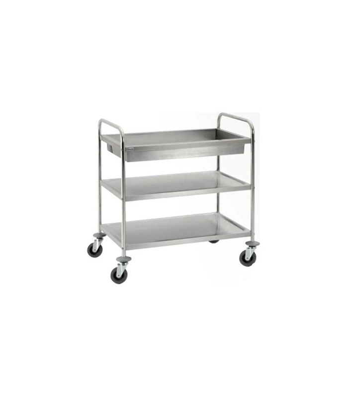 Chariot de transport avec 2 plateaux et 1 bac de débarrassage
