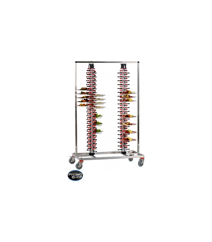 Ce chariot porte assiettes constituĂ© de 2 colonnes sur un mĂŞme chassis vous permettra d’obtenir une capacitĂ© maximum de stockage pour un minimum de place. Les colonnes chargĂ©es d’assiettes jusqu’Ă un diamètre de 33 cm pivotent sur elle mĂŞme indĂ©pendamment l’une de l’autre Ă l’intĂ©rieur du chassis.