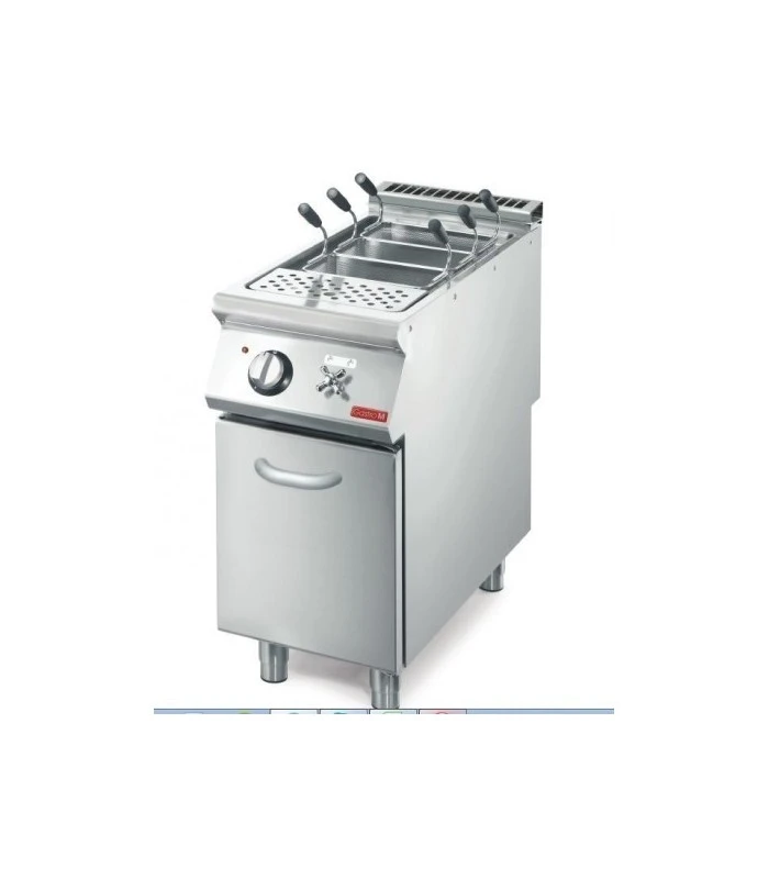 Ce cuiseur à pâtes électrique permet de cuire différentes types de pâtes simultanément grâce à ses 2 paniers GN 1/3. Cet appareil de cuisson vous permettra de cuire à la perfection vos pâtes.