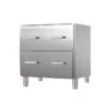 - Glissières en inox AISI 304L épaisseur 15/10, assemblées par un cordon de soudure assurant une haute résistance (sans butées avant et arrière)