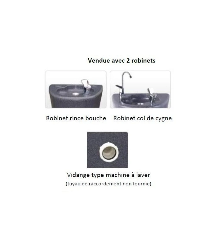 - Livrée avec 2 robinets inox : col de cygne et/ ou rince bouche
