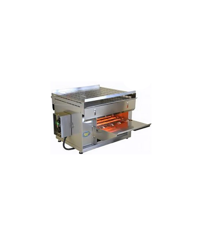 - PrĂ©cision et flexibilitĂ© grâce au rĂ©glage indĂ©pendant de la vitesse de rotation du tapis convoyeur et de la puissance de chauffe (demie ou pleine puissance), rĂ©glage de la Hauteur d’entrĂ©e de 7 Ă 11 cm Ă l’entrĂ©e et Ă la sortie grâce aux rĂ©flecteurs pour concentrer la tempĂ©rature dans l’enceinte de cuisson et rĂ©duire d’autant le temps de cuisson : 1 minute 30 en moyenne