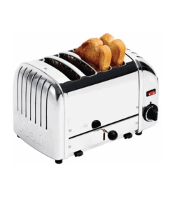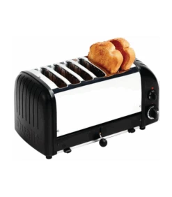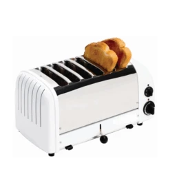 Ce grille-pain professionnel est Ă©quipĂ© d’un levier d’Ă©jection Ă pousser vers le bas et d’une minuterie avec arrĂȘt automatique. Deux modĂšles existent : 4 ou 6 tranches. Plusieurs coloris sont possibles : rouge, inox, gris antharcite, blanc ou noir. Convient pour les professionnels de la restauration.