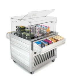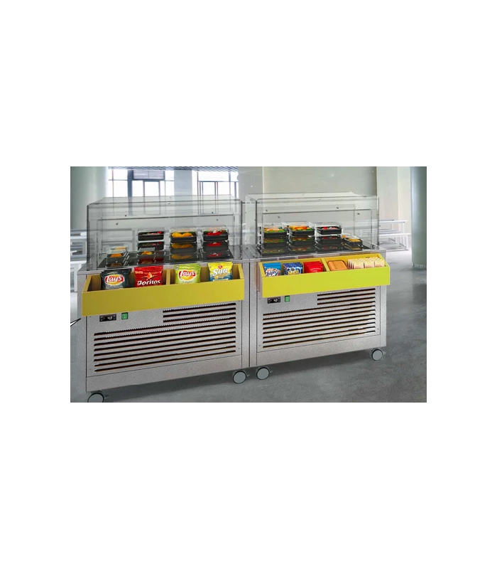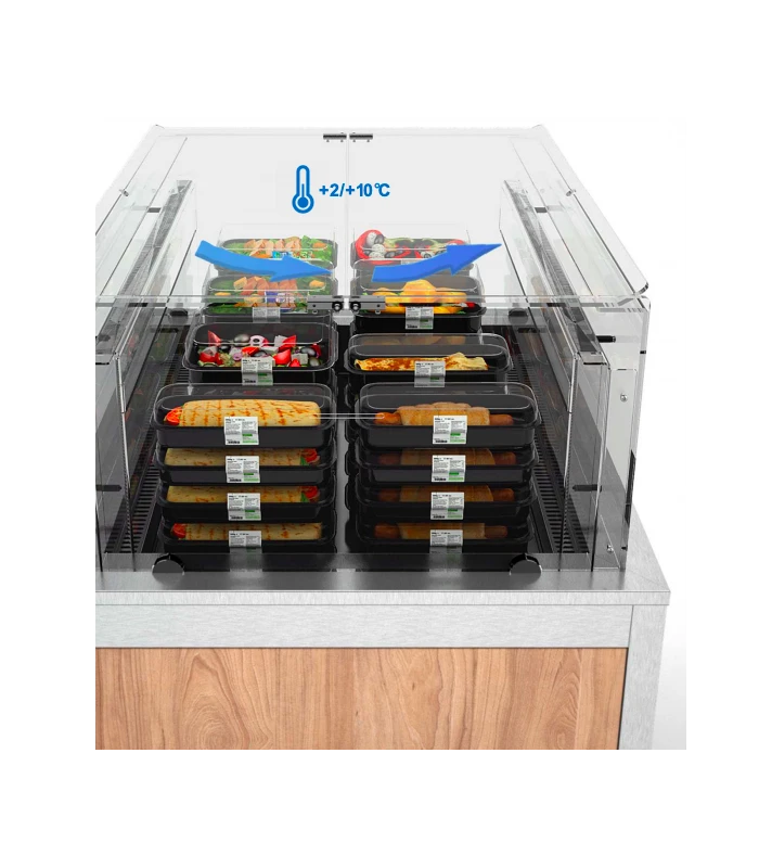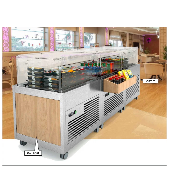 OMNIA PICK permet aux clients de se servir de manière autonome et en toute sécurité, garantissant à la fois un entretien optimal des aliments. Il s’adapte facilement aux besoins les plus variés, de grands espaces communs dans les lieux publics (gares et aéroports) jusqu’à petites salles pour le petit déjeuner dans les hôtels. C’est la solution idéale pour la distribution des aliments prêts à manger et sa construction permet l’emploi soit pour la distribution et la consommation sur place soit pour la distribution de aliments à emporter (salades de fruits, sandwichs, boissons et jus de fruits, sushi et snacks en général …).