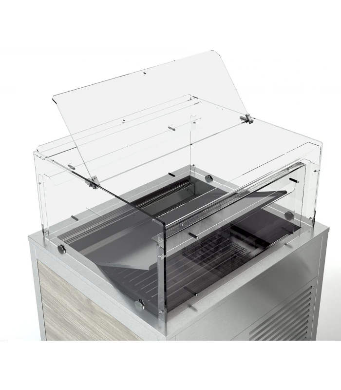 - La vitrine en plexiglas permet une visibilité complète du produit et garantit la meilleure hygiène et sécurité