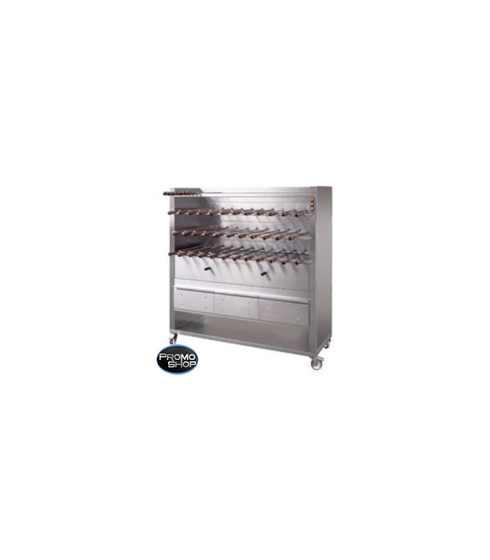 Churrasco professionnel fabriquĂ© en Europe, modĂšle avec charbon de bois d’une capacitĂ© allant de 17 Ă 35 broches pour accueillir vos viandes.  Â