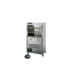 - Structure portante en acier inox nervurée et renforcée montée sur 4 roues dont 2 à freins
