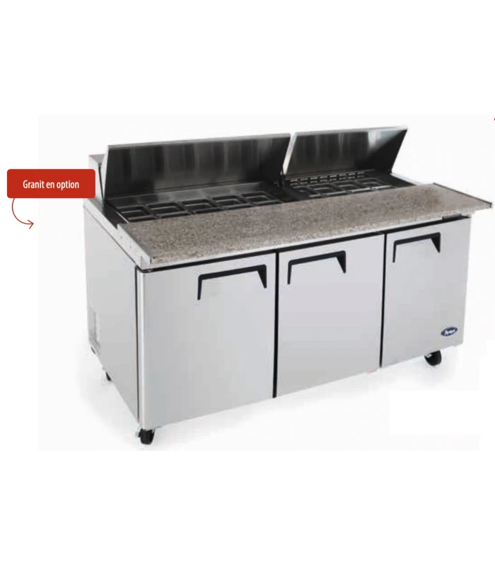 Saladette 3 portes avec compartiment pour 18 bacs GN 1/6