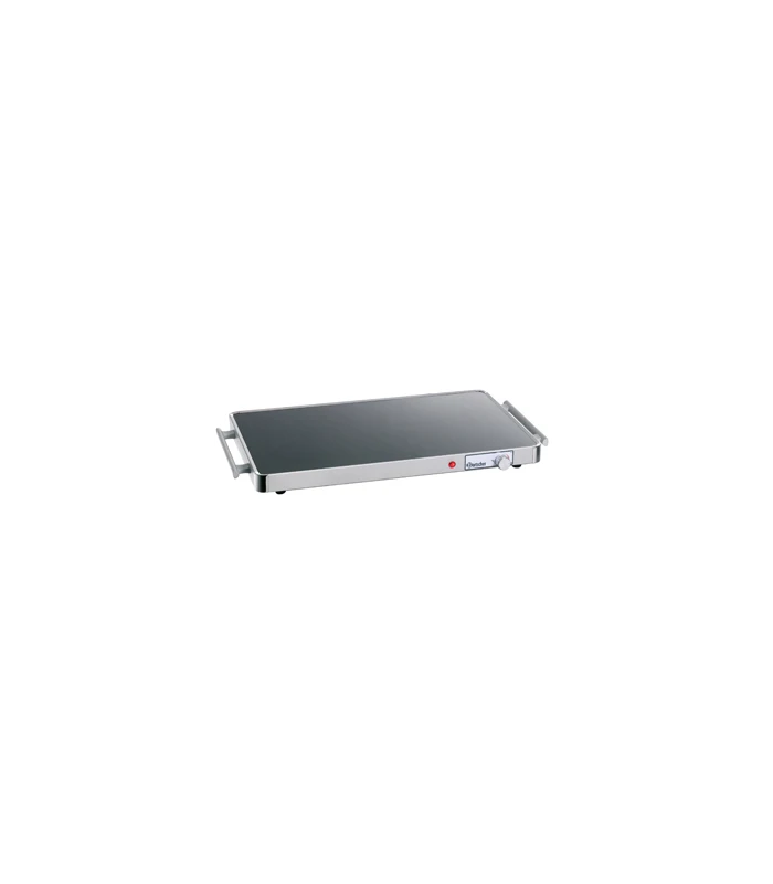 Plaque chauffante de qualitĂ© professionnelle, habillage aluminium, surface en verre avec bouton de marche/arrĂȘt. IdĂ©ale pour tous les professionnels de la restauration. Elle existe en version GN 1/1 et GN2/1.