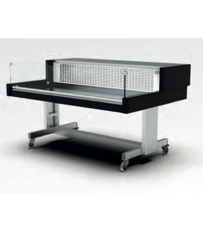 Cet étal à poisson monté sur quatre roues est très pratique. Le présentoir est conçu pour l’exposition de poissons frais, fromages, charcuteries… De fabrication portugaise.