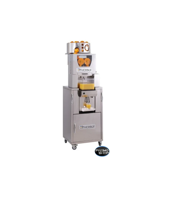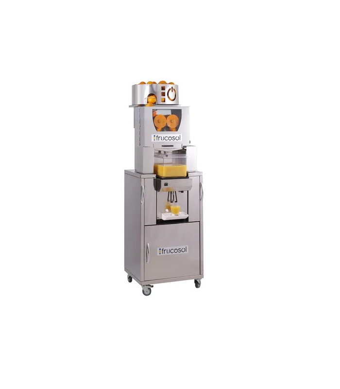 Ce presse agrume est montĂ© sur un meuble en acier inoxydable permettant le stockage des Ă©corces d’orange. Le presse orange realise un dĂ©licieux jus sans pulpe ni pĂ©pins. Ce presse orange est dotĂ© d’un rĂ©servoir de 7 litres permettant de conserver un jus frais grâce Ă son système de refroidissement.Â