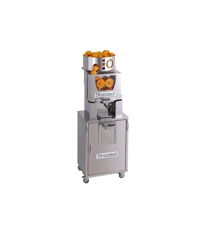 Ce presse agrume professionnel permet de servir un jus frais et vitaminé. Le presse oranges est monté sur un meuble conteneur de pelures en acier inoxydable.