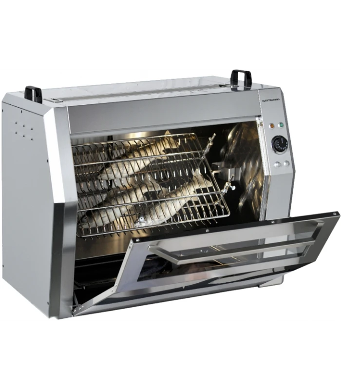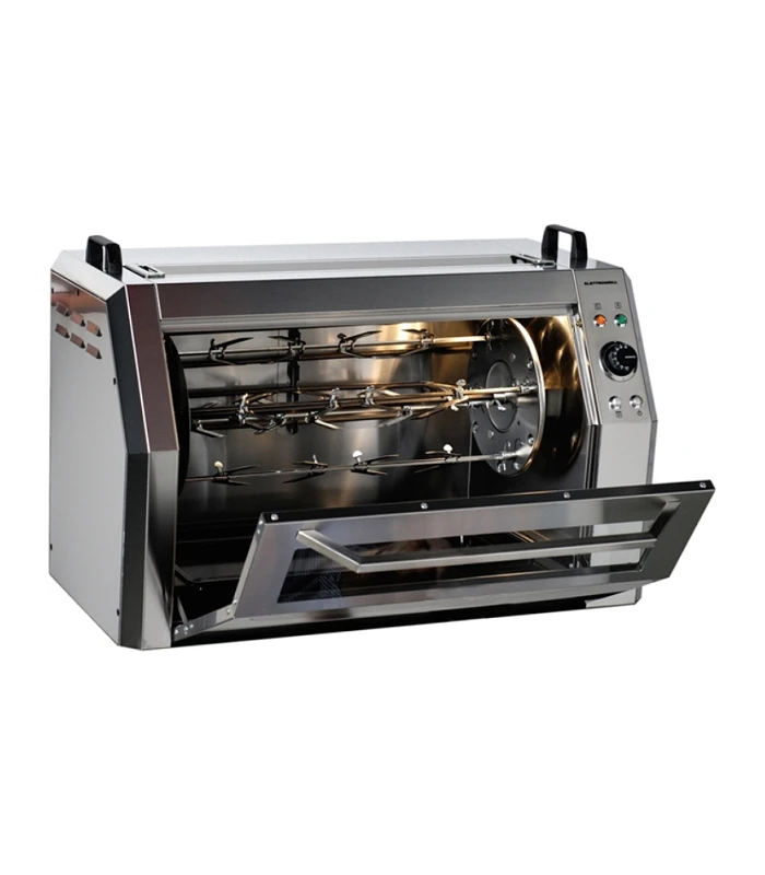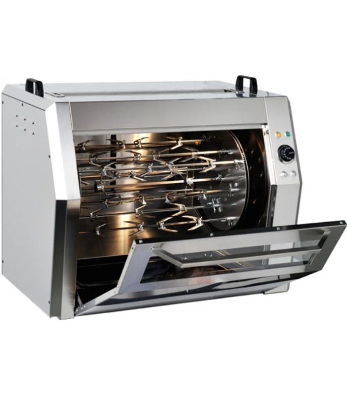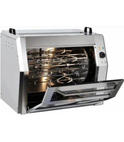 Cette rôtissoire électrique à poser est dotée d’une broche centrale et de 4 ou 8 broches tournantes selon le modèle. La rôtissoire professionnelle assure une cuisson homogène de vos poulets. De fabrication italienne.