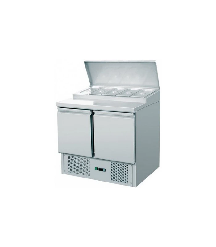 Promoshop.fr vous propose le meilleur rapport de table de préparation réfrigérée pour équiper votre cuisine de restaurant. Cette saladette est dotée d’un compartiment pour bacs GN et d’un couvercle en inox. Le meuble de préparation réfrigéré est équipé d’un moteur situé en dessous. Deux modèles existent : 2 ou 3 portes. Idéal pour les restaurants.