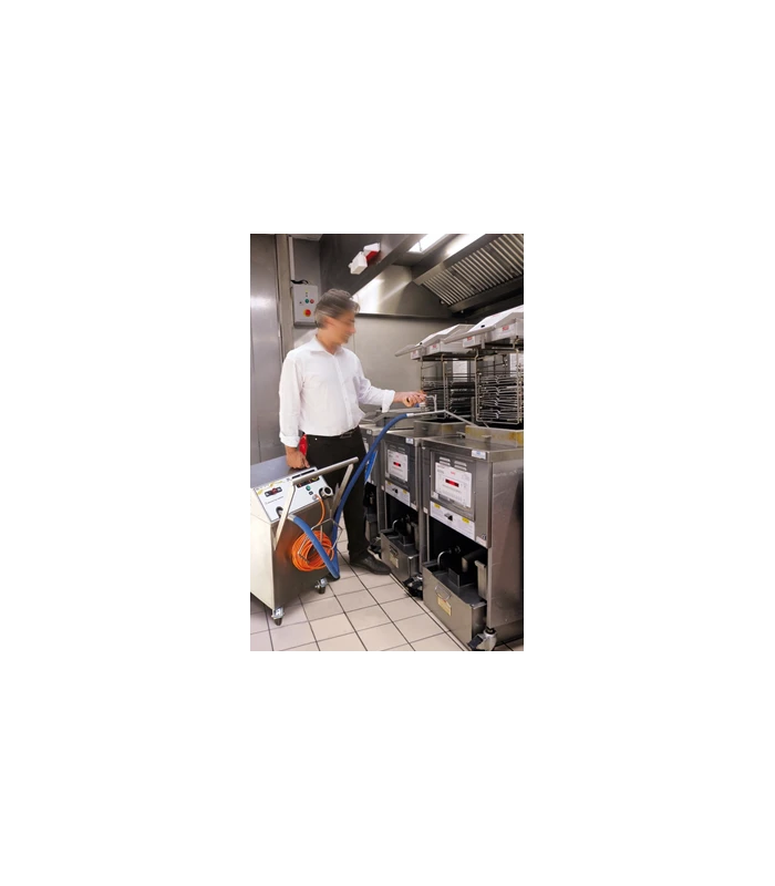 - Recommandé pour les restaurants qui ont plusieurs friteuses de 12/15 litres, leur permettant de faire plusieurs vidanges.