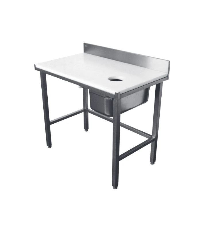 - Dessus de plaque polyéthylÚne blanc HD500 épaisseur 25 mm avec goulotte déchet de diamÚtre 200 mm à droite