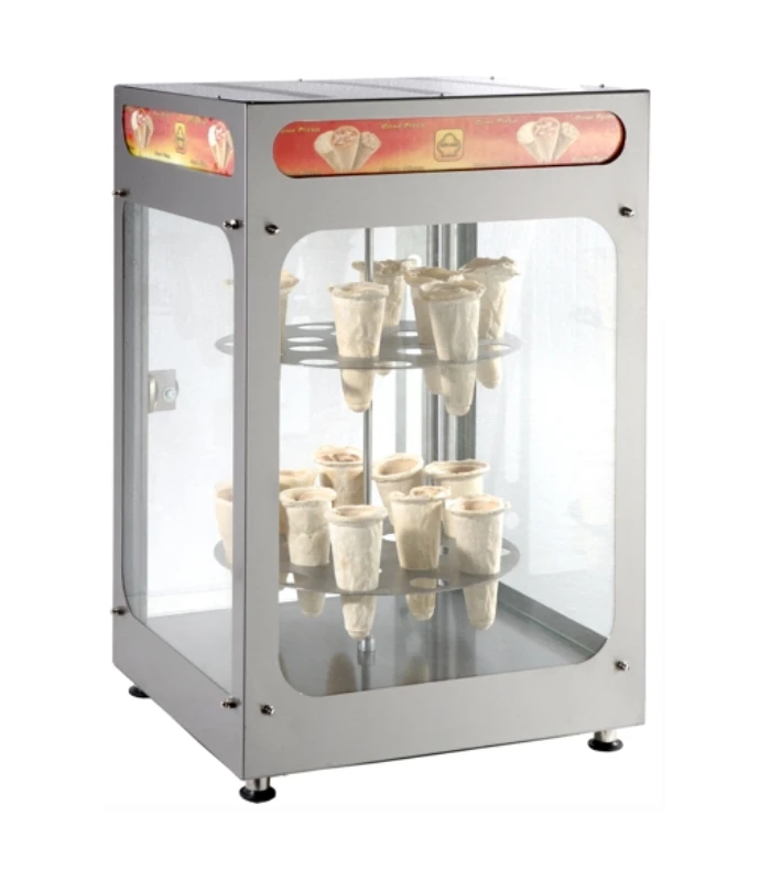 Vente de vitrine chauffante spĂ©ciale pour cĂŽnes pizza, idĂ©ale pour restaurant. Cette vitrine de prĂ©sentation permet de mettre en avant vos prĂ©parations tout en conservant Ă la bonne tempĂ©rature. La vitrine de comptoir est dotĂ©e d’Ă©tagĂšres rotatives. CapacitĂ© : 32 cornets Ă pizzas.