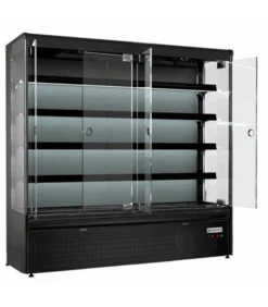 Vitrine réfrigérée libre-service avec portes vitrées ouvrantes