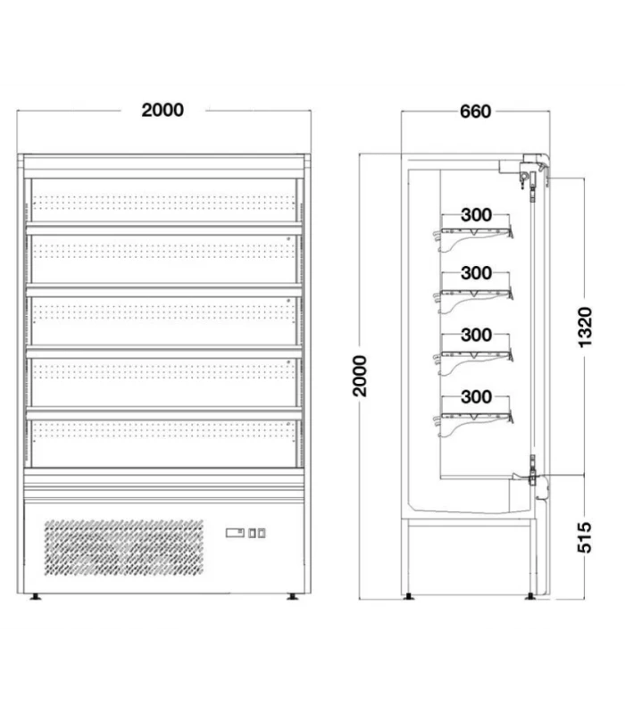 Vitrine libre-service réfrigérée longueur 2000 mm :