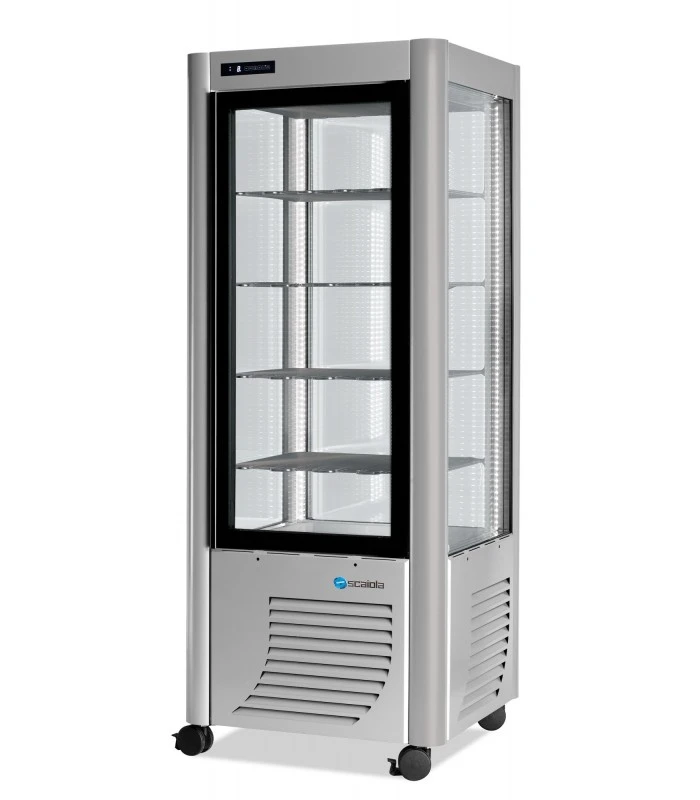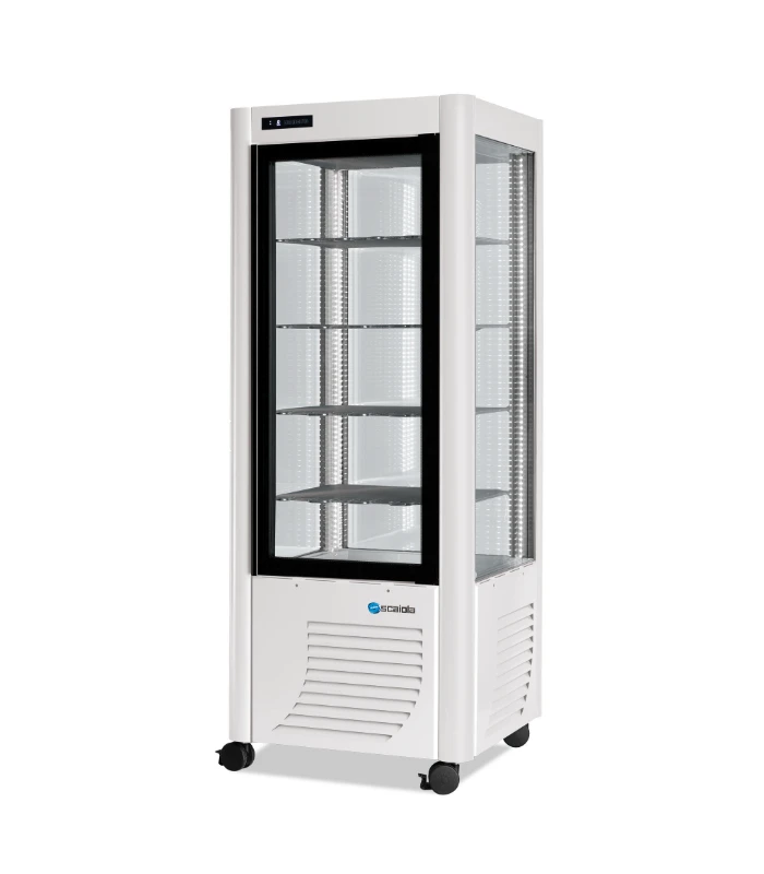 Cette vitrine pâtissière à 4 faces vitrées offre une vision panoramique de vos réalisations. D’une capacité de 400 litres, froid statique négatif. Fabricant italien SCAIOLA.
