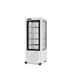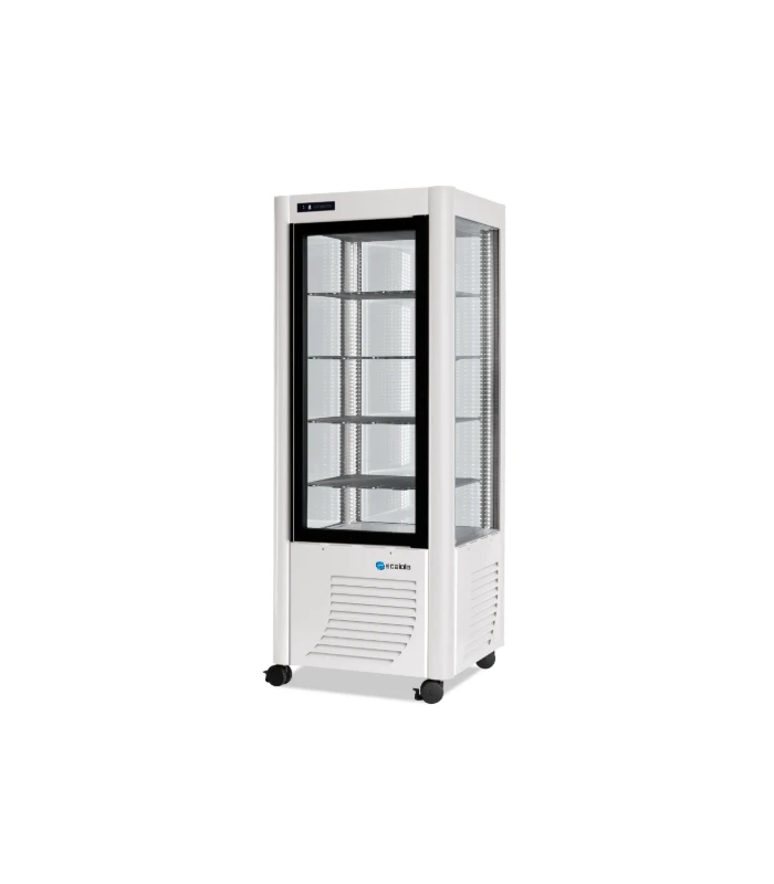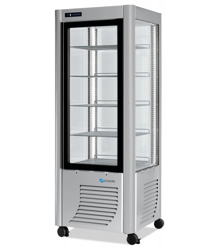 Cette vitrine pâtissière à 4 faces vitrées offre une vision panoramique de vos réalisations. D’une capacité de 400 litres. Fabricant italien SCAIOLA.