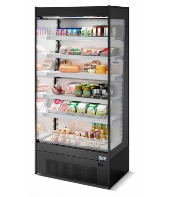 Vitrine rĂ©frigĂ©rĂ©e moderne et compacte idĂ©ale pour toutes les surfaces, spĂ©cialement pour les commerces de petites tailles. Cette vitrine rĂ©frigĂ©rĂ©e murale possĂšde un Ă©clairage.Â