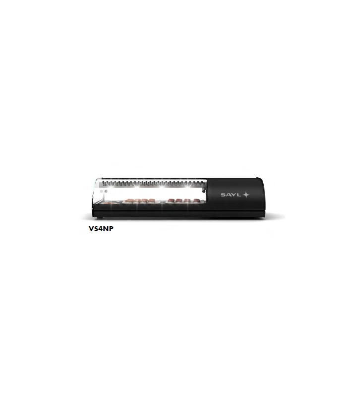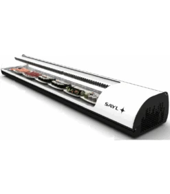 Cette vitrine réfrigérée positive +2°C /+6°C permet de mettre en avant vos préparations tout en les gardant à la bonne température. L’utilisation première de cette vitrine est de présenter vos produits, elle n’est pas à utiliser dans un but de stockage. Plusieurs coloris sont possibles. De fabrication espagnole.